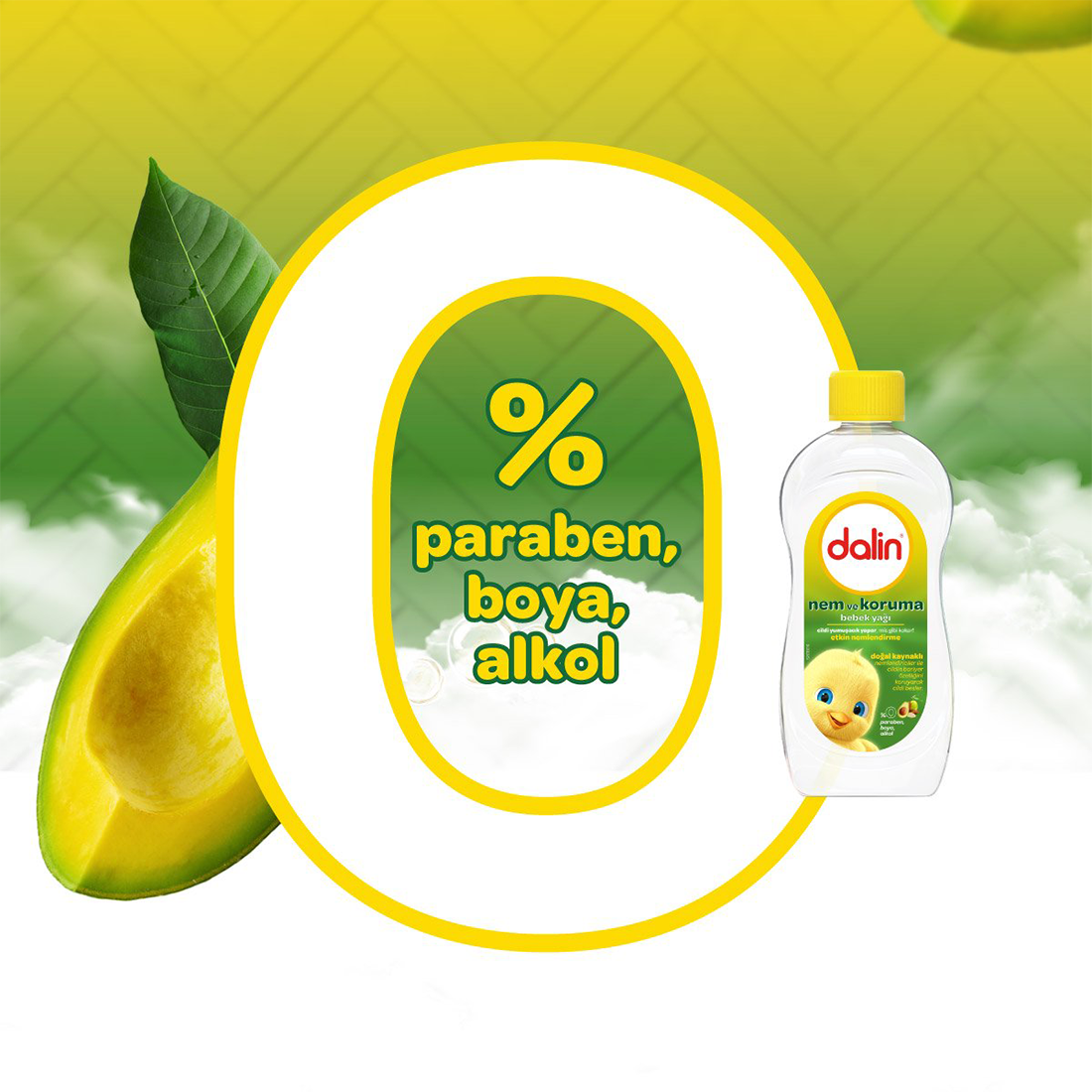 dalin bebek yağı cildin bariyerini besleyen avokado yağı, yoğun besleyici badem yağı ve cildin doğal nemini düzenleyen zeytinyağını bir araya getiren Dalin Nem ve Koruma Bebek Yağı, içeriğindeki doğal kaynaklı nemlendiriciler ile cildin nemini korur. En kuru ciltlerde bile etkin nemlendirme sağlar.