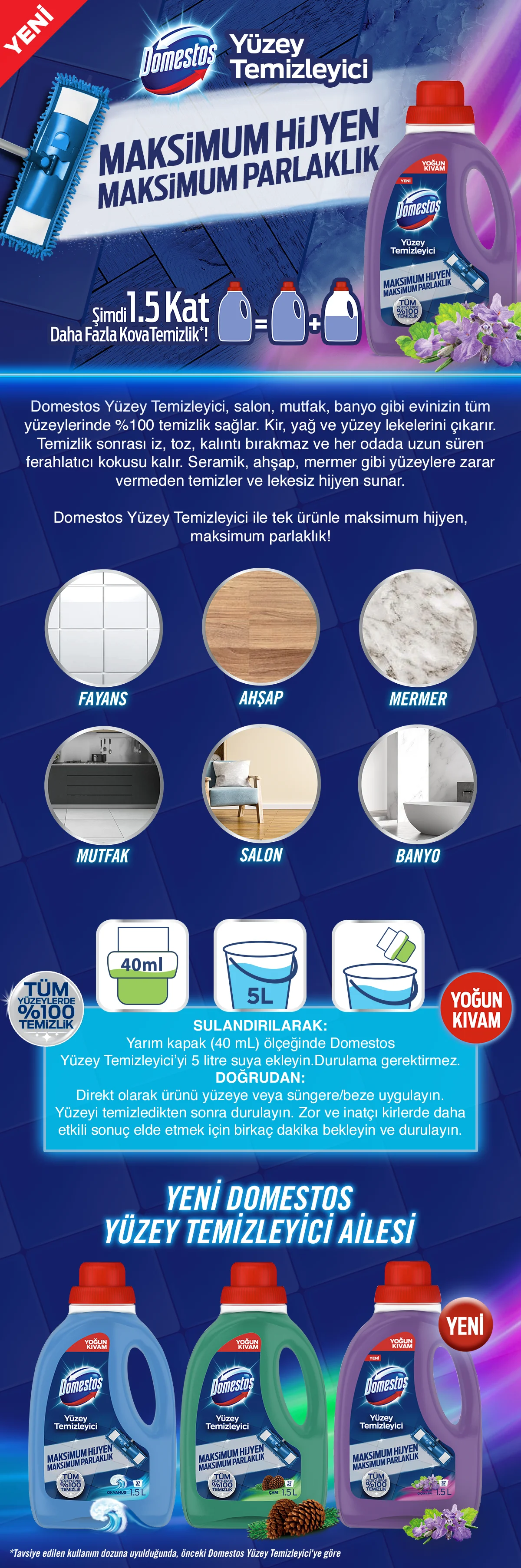 Domestos Yüzey Temizleyici Bahar Çiçekleri Maksimum Hijyen Tüm Yüzeyler için Yüzey Temizleyici 1500 ML Değerlendirmeleri