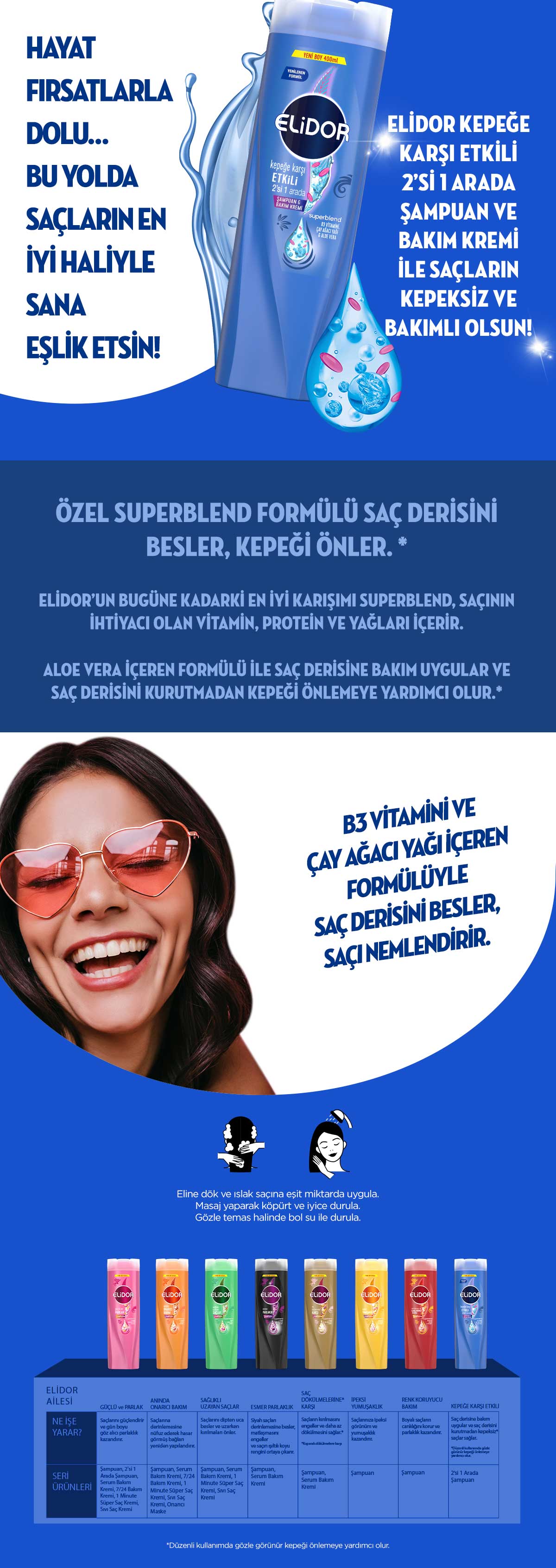 Elidor Superblend Şampuan ve Bakım Kremi Kepeğe Karşı Etkili 2'si 1 Arada B3 Vitamini Çay Ağacı Yağı Aloe Vera 400 ml Değerlendirmeleri