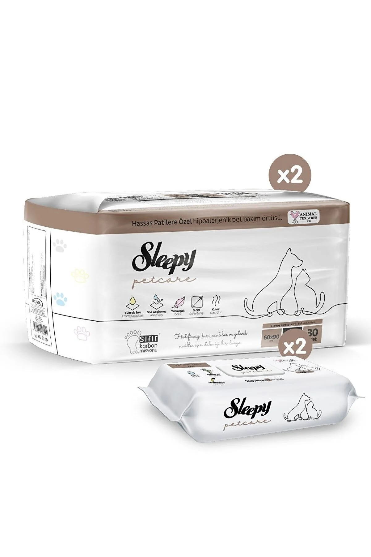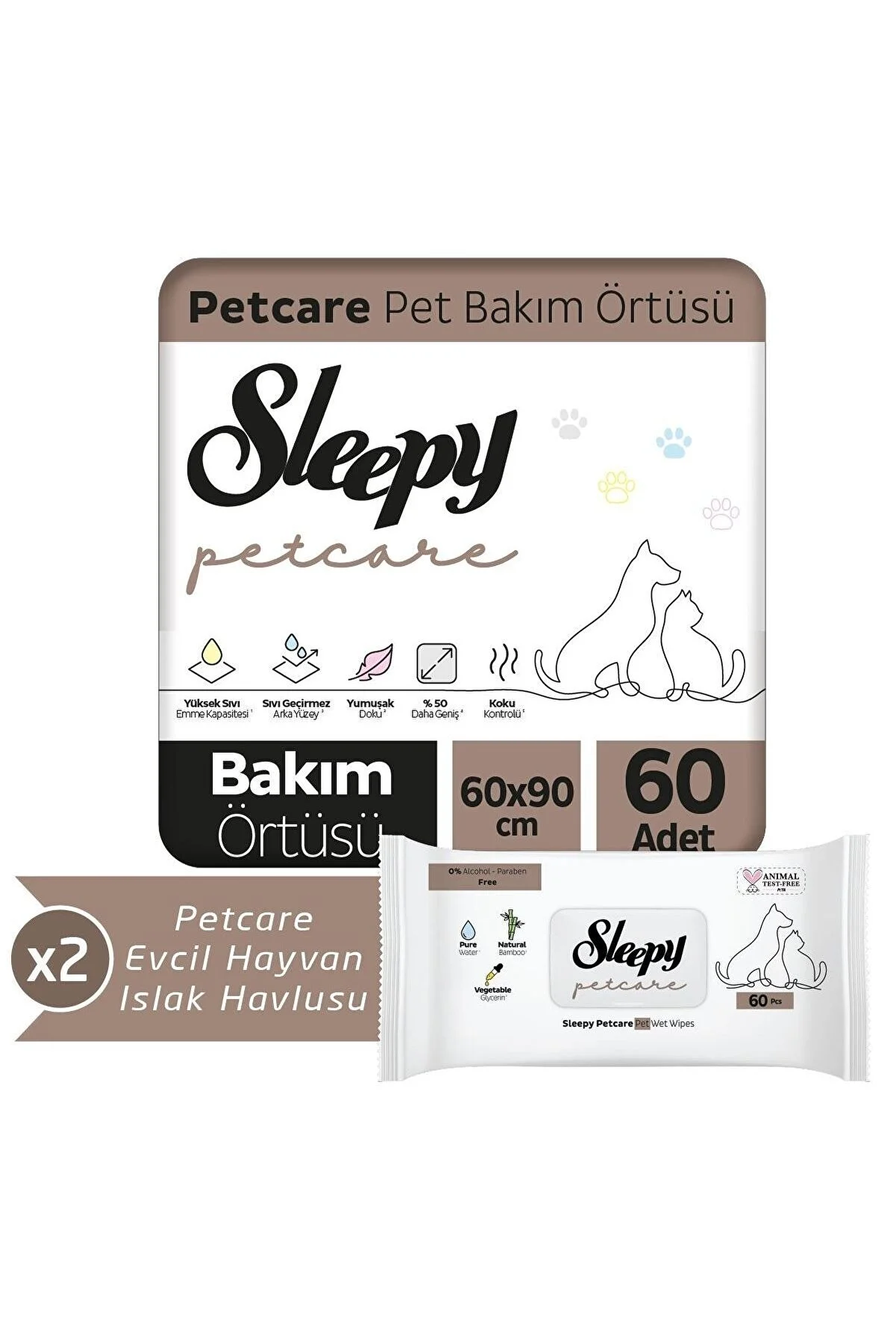 Sleepy Petcare 2x30 Adet Pet Bakım Örtüsü 2x60 Evcil Hayvan Islak Havlusu
