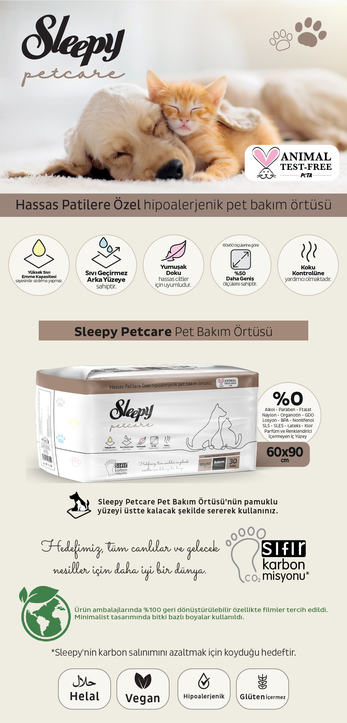 Sleepy Petcare Pet Bakım Örtüsü 60x90 cm 30 Adet Değerlendirmeleri