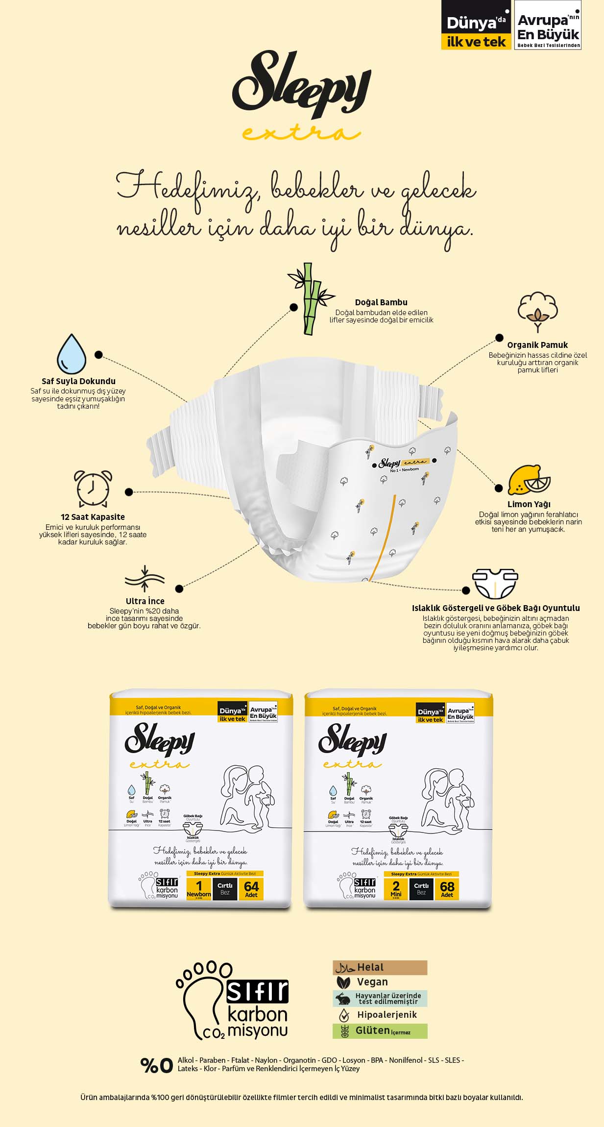 Sleepy YeniDoğan 1 Numara Cırtlı Bez 64'lü - Sleepy Alt Açma Örtüsü 60x90 cm 10'lu - Sleepy Natural Yenidoğan Islak Pamuklu 12x40